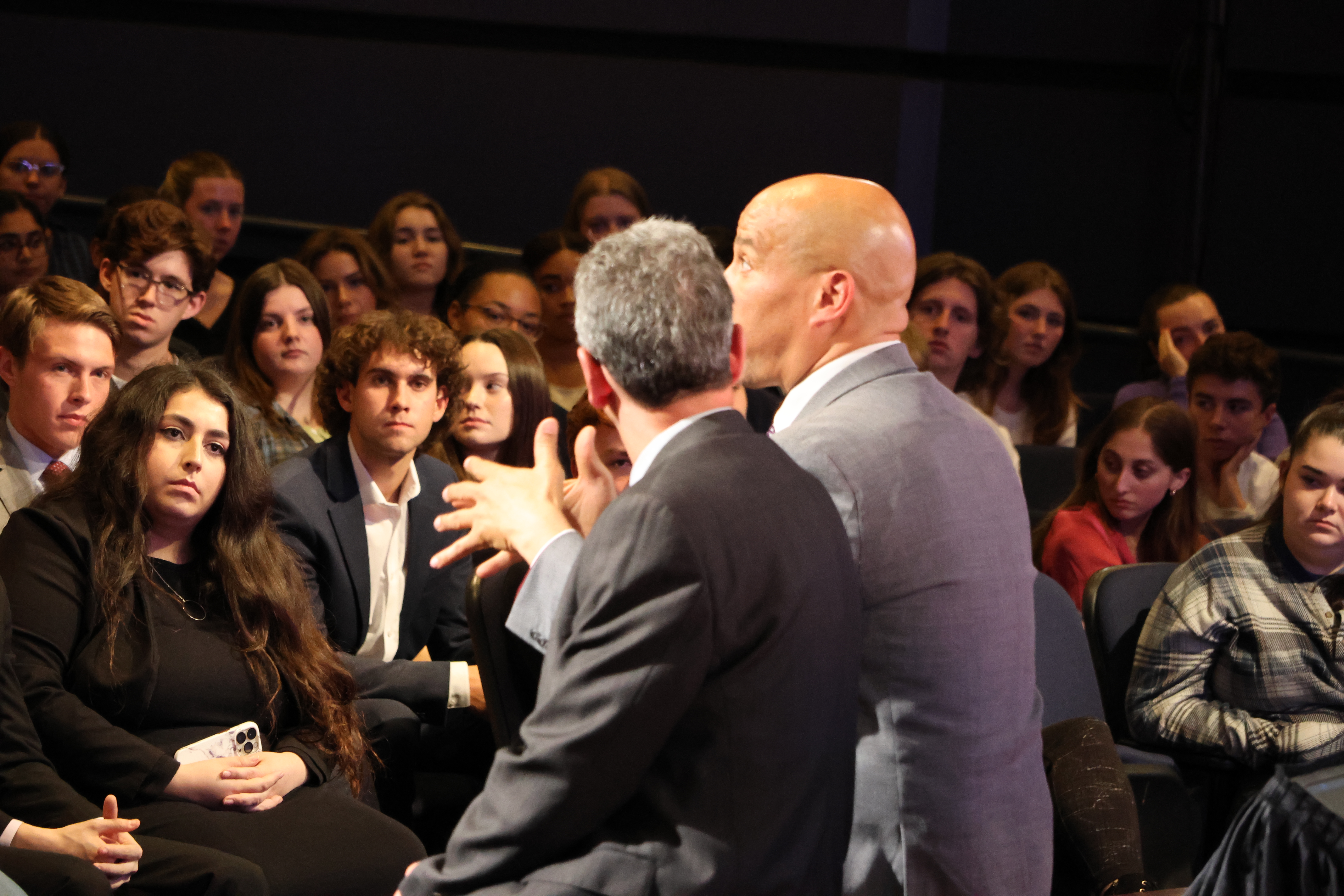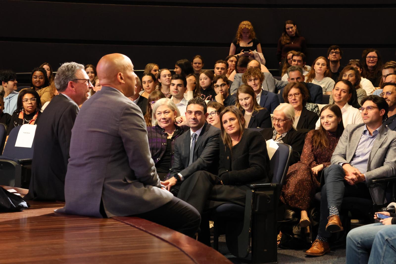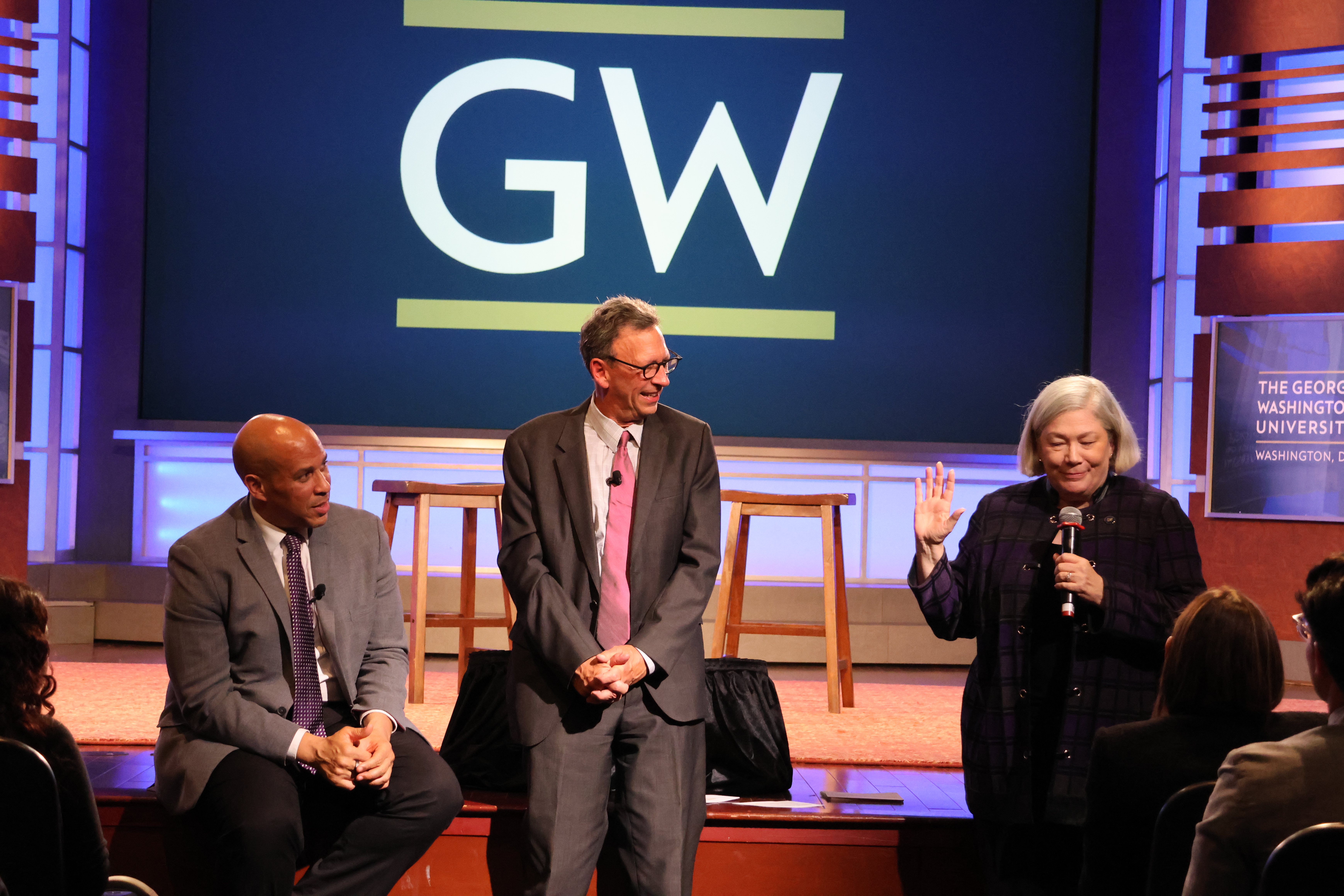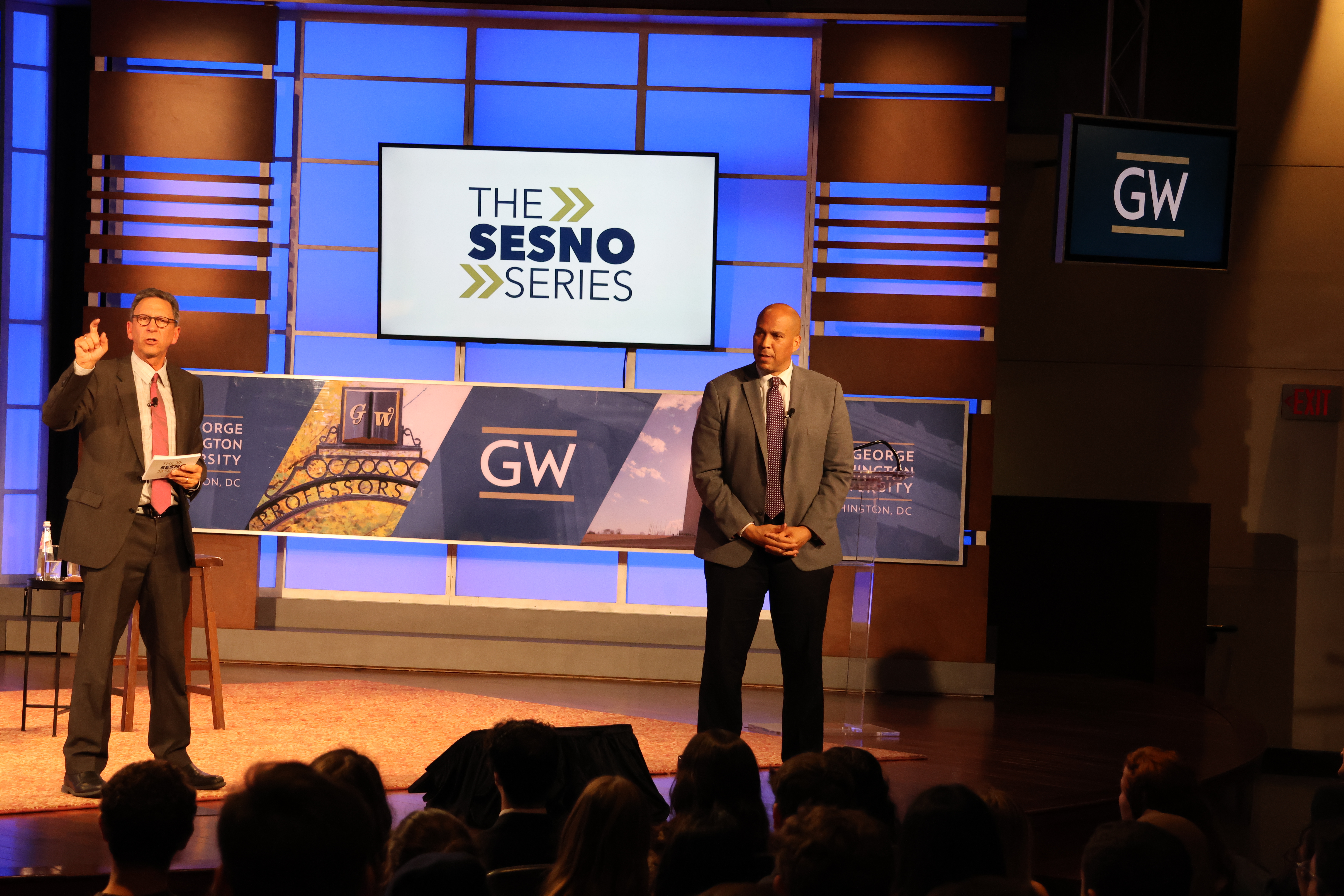 The first ever Sesno Series event, A House Divided: How to Survive our Polarized Times, A Conversation with Cory Booker, was held in September 2023. Frank and Senator Booker had an inspirational discussion on the state of our democracy and the night also featured clips from an enlightening GW student focus group led by renowned pollster Frank Luntz. Be sure to check out the recording of the event, a gallery of photos, and the student focus group clips below.