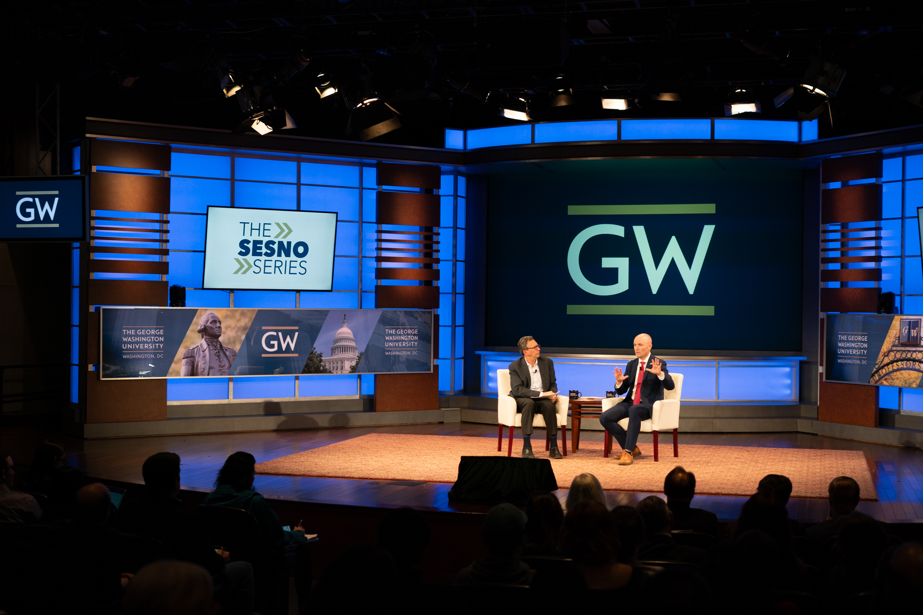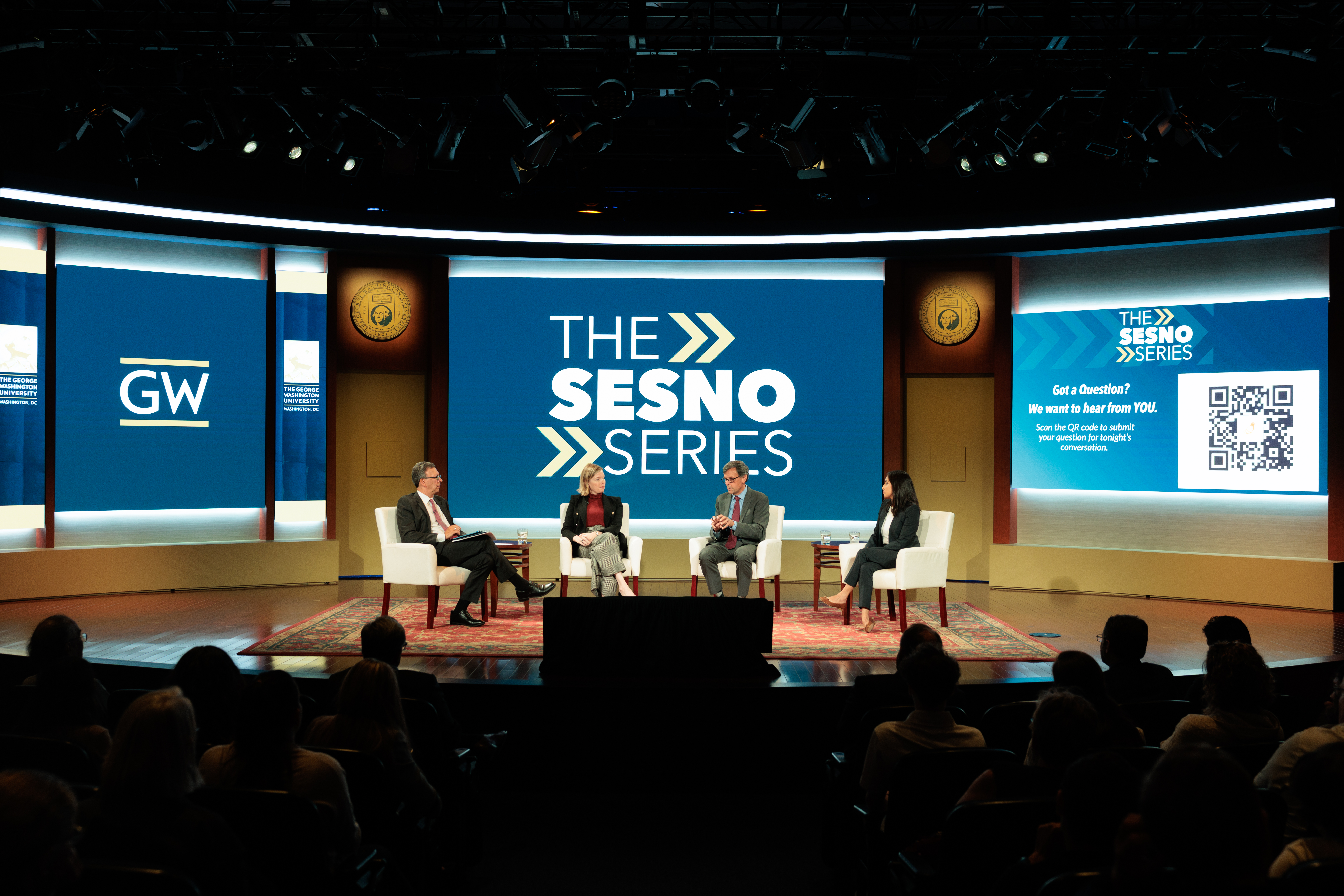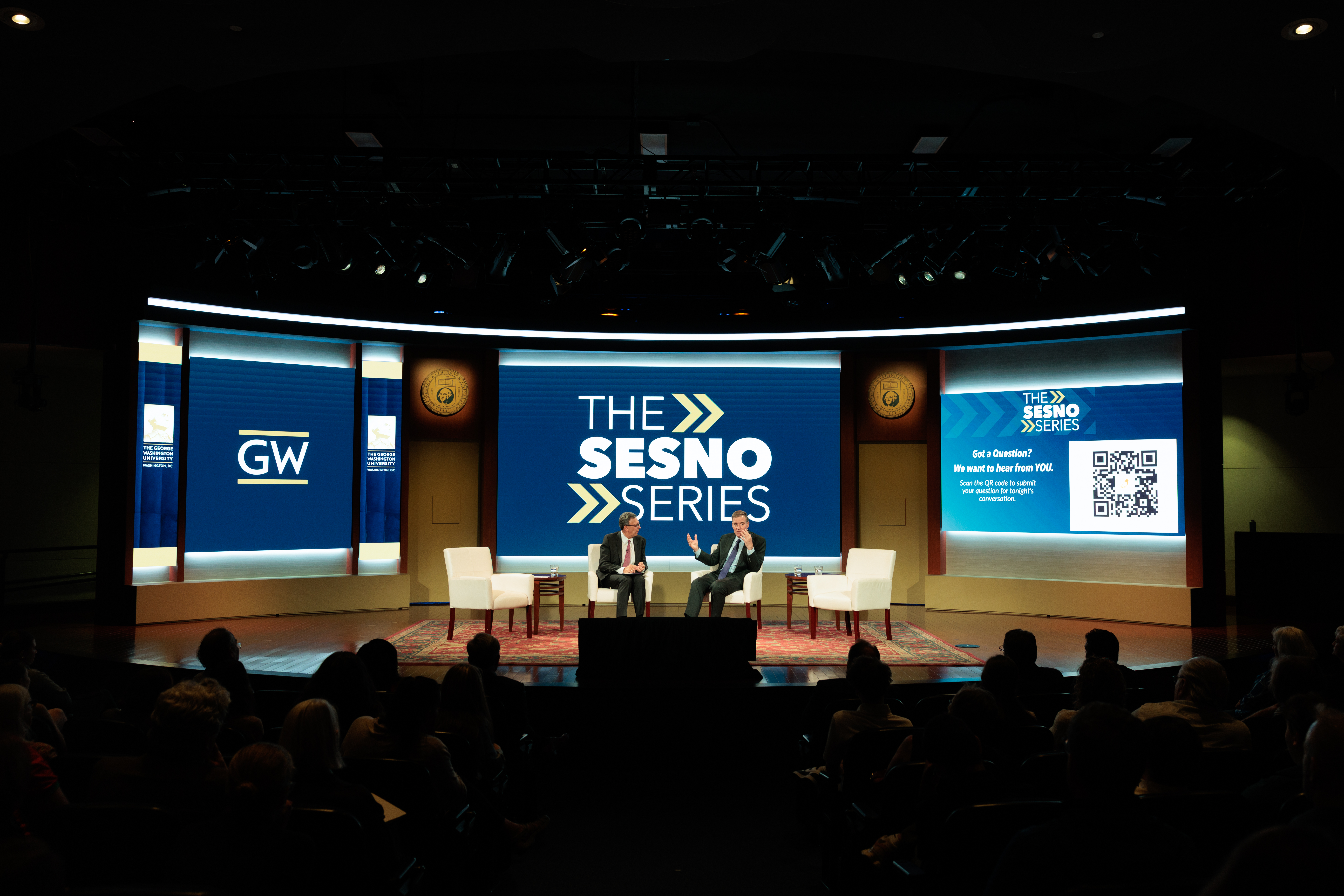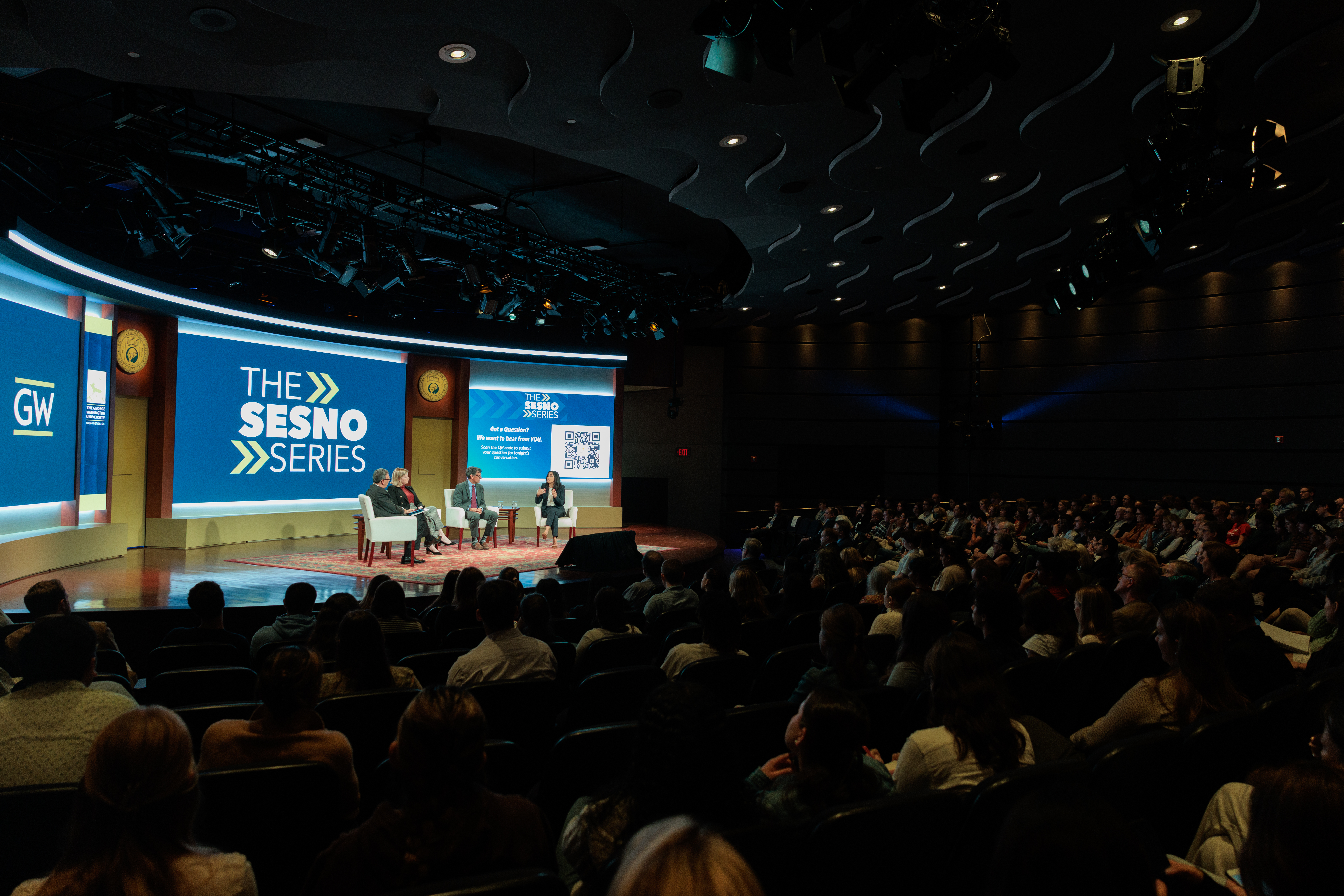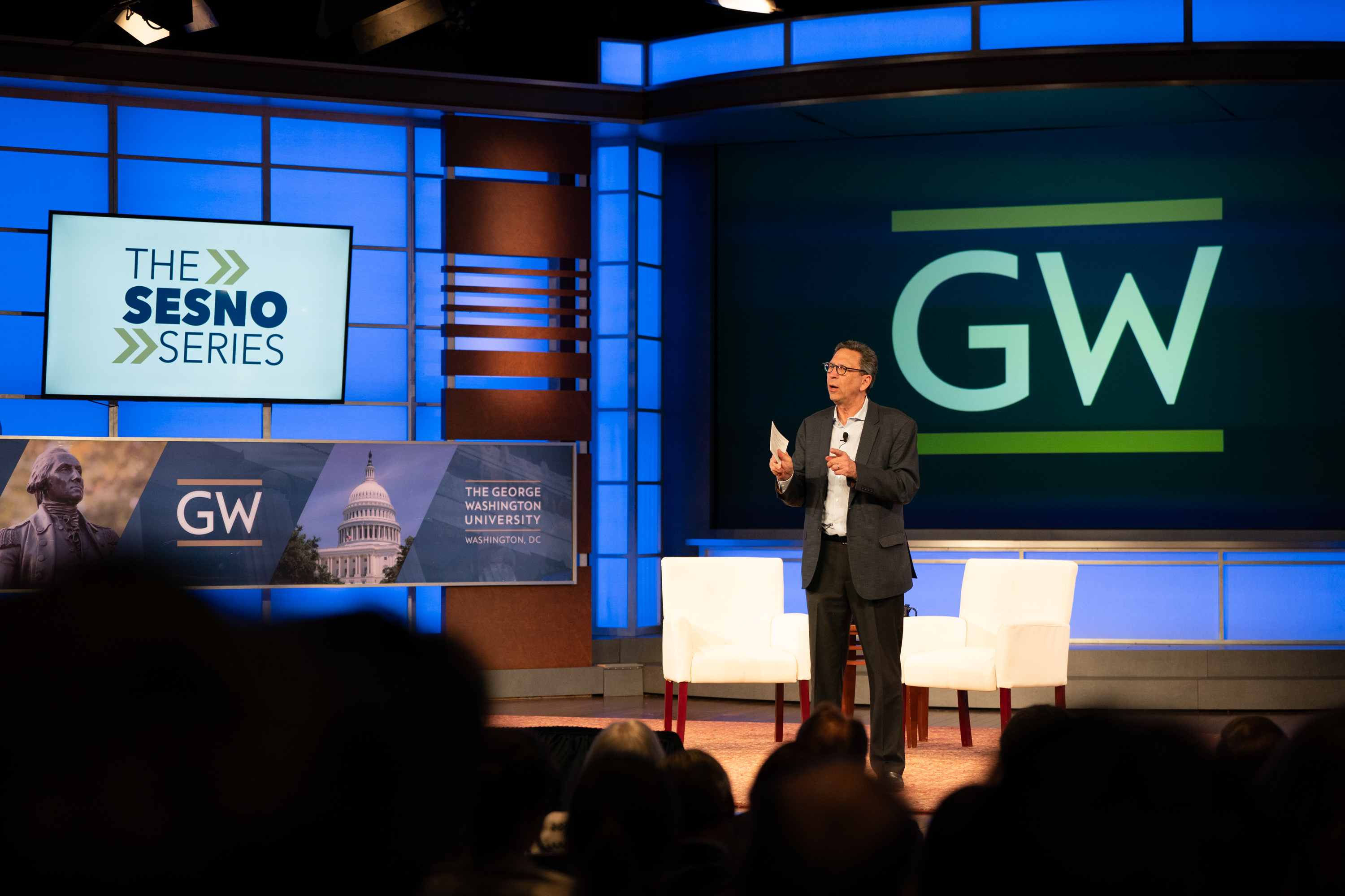 Endowed by GW alumni Ted Segal, B.A. ’03, and Meredith Perla Segal, B.Accy. ’05, the Sesno Series was created to honor the contributions of Frank Sesno, SMPA professor and former SMPA director, CNN reporter, anchor and Washington bureau chief.
