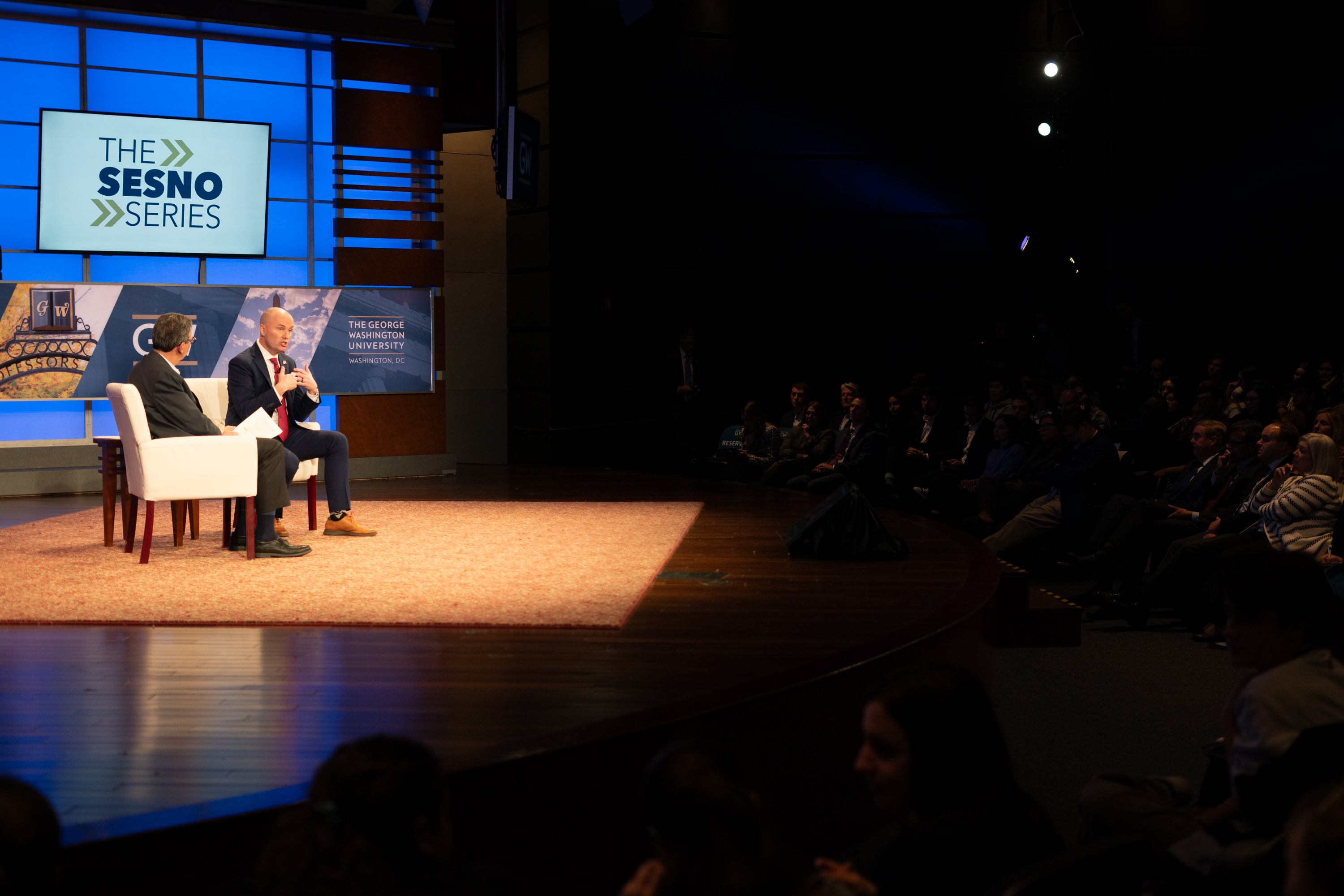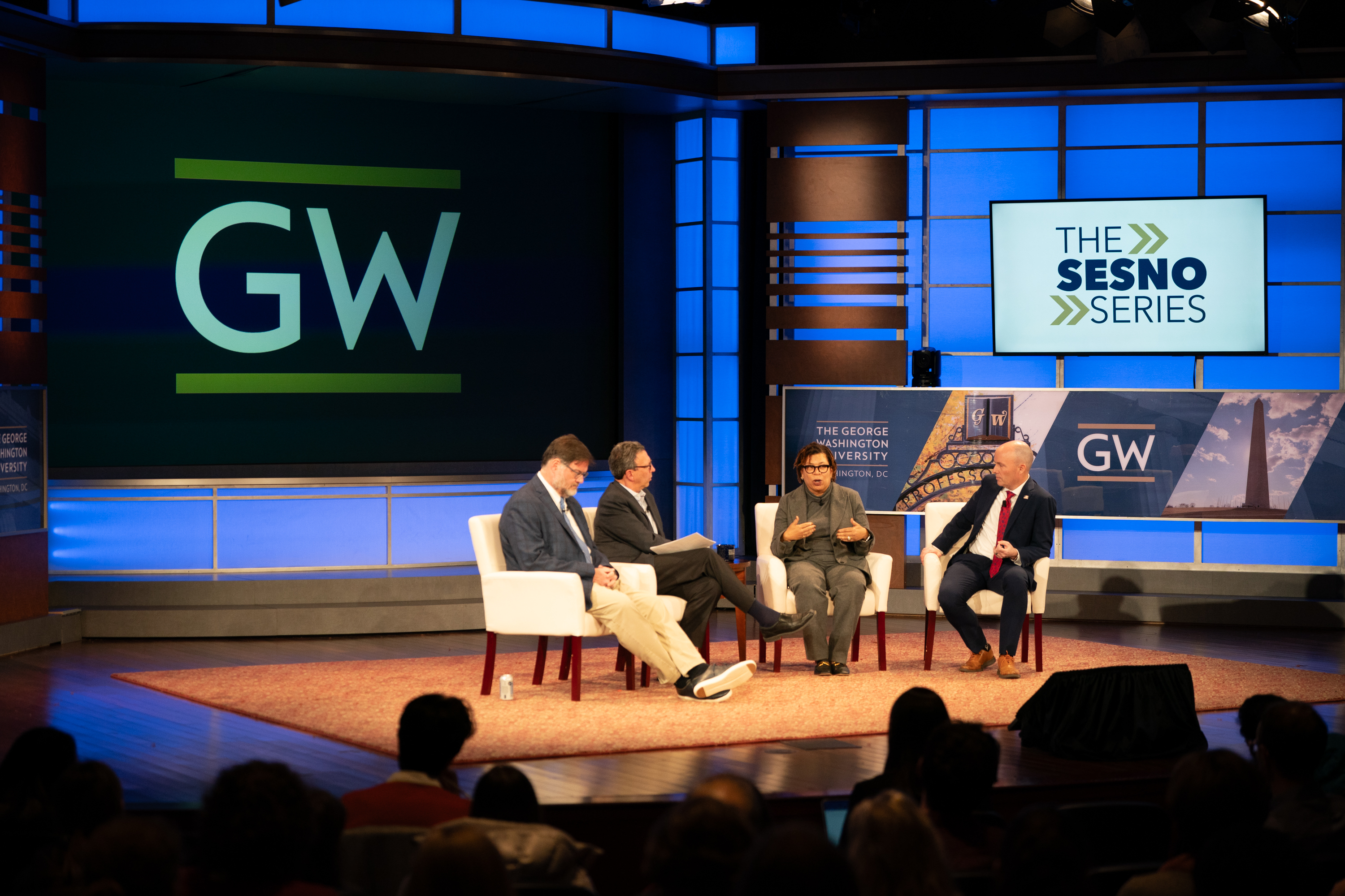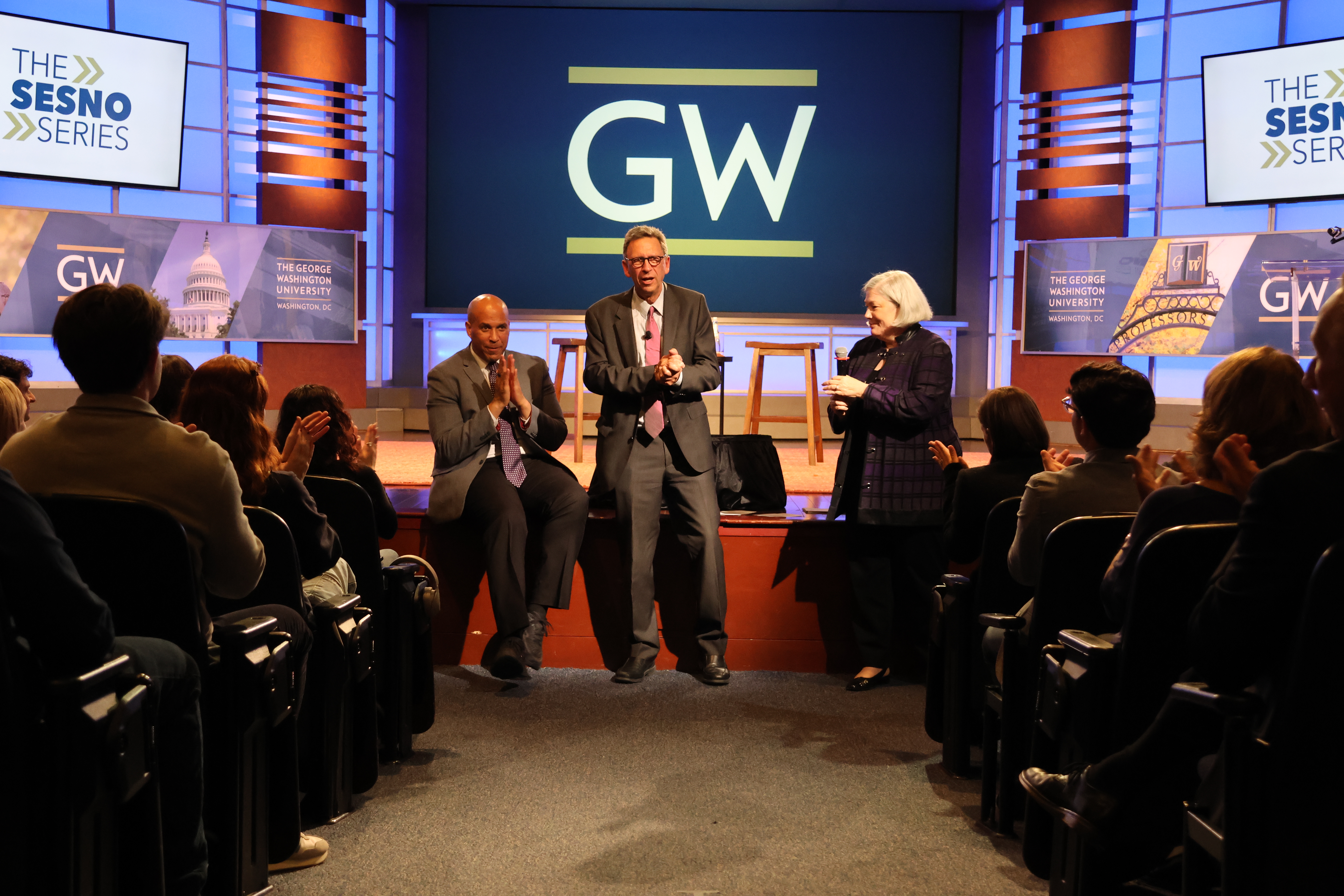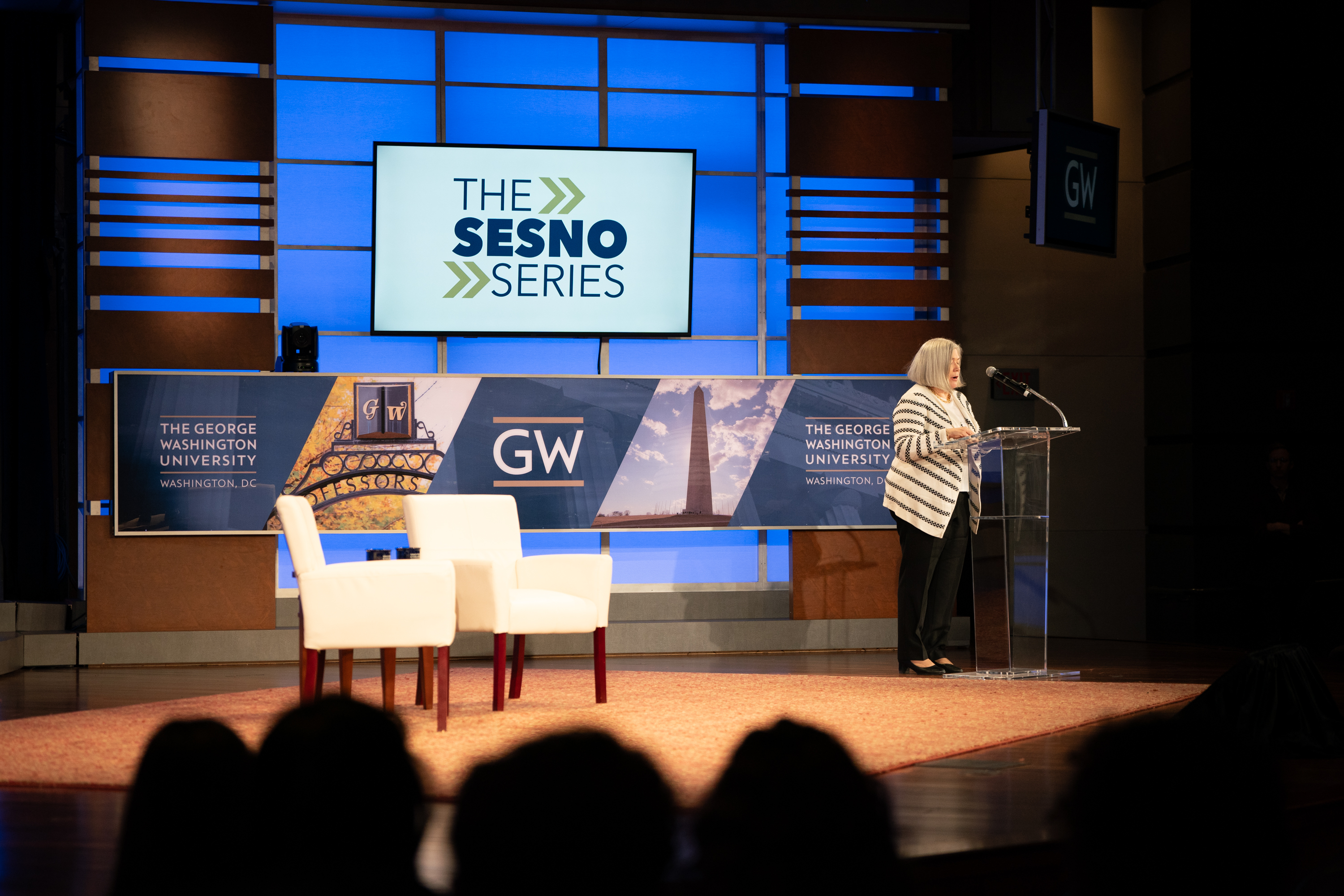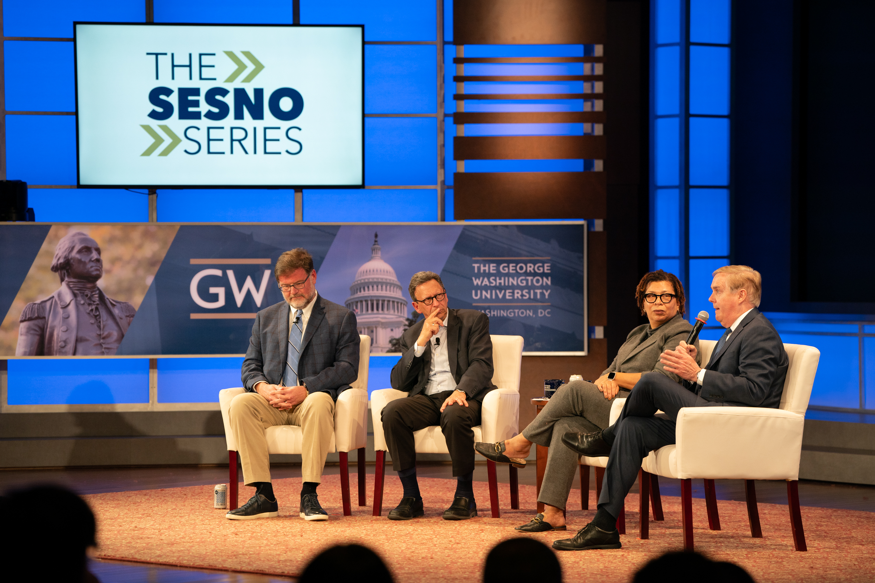 Endowed by GW alumni Ted Segal, B.A. ’03, and Meredith Perla Segal, B.Accy. ’05, the Sesno Series was created to honor the contributions of Frank Sesno, SMPA professor and former SMPA director, CNN reporter, anchor and Washington bureau chief.