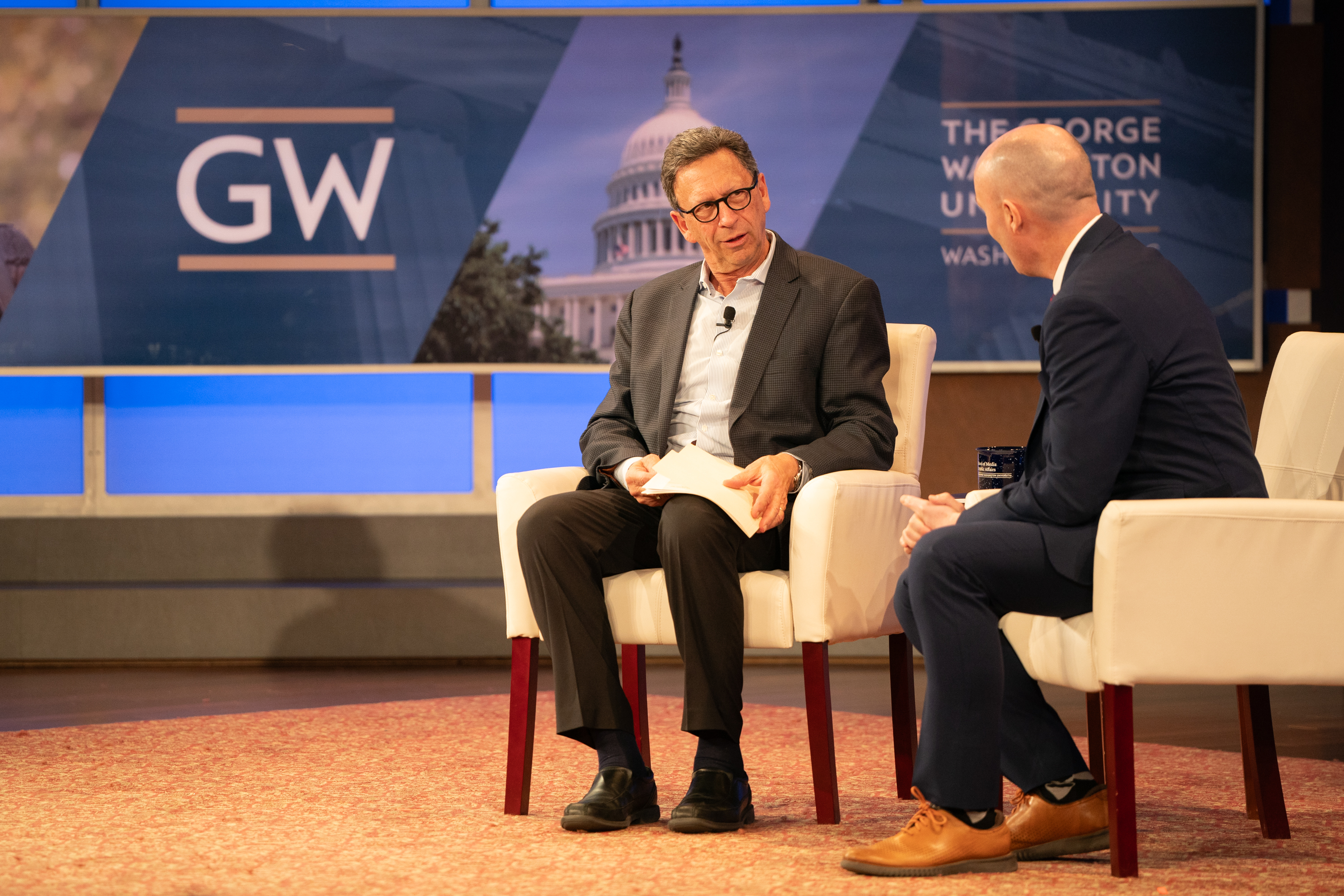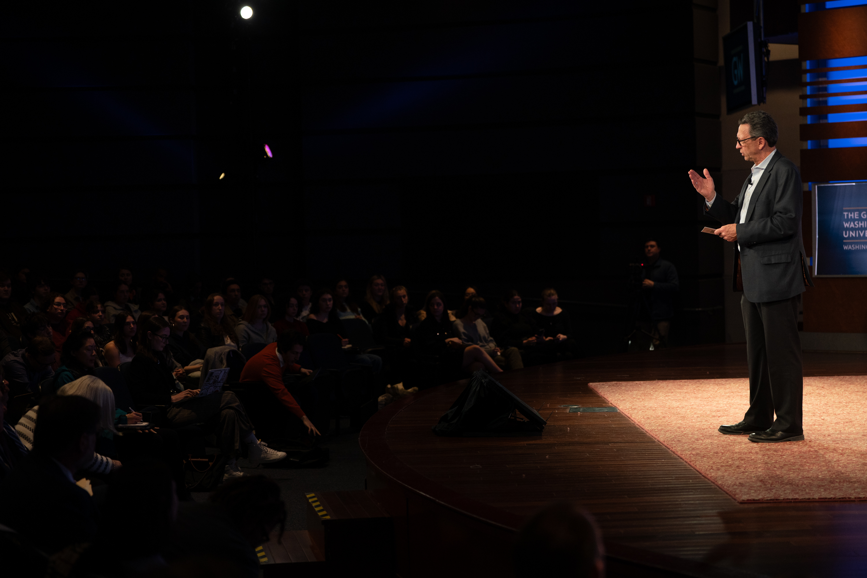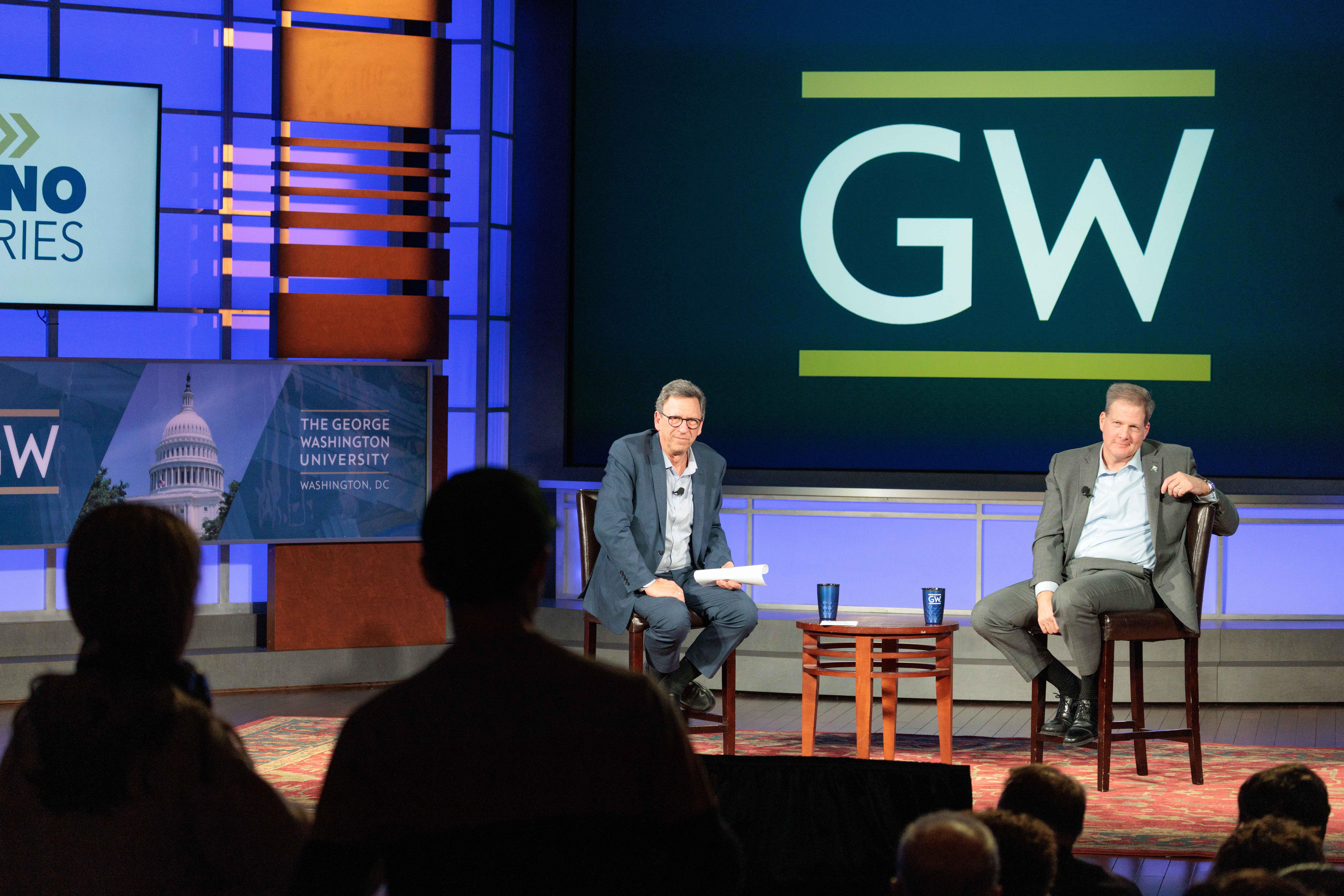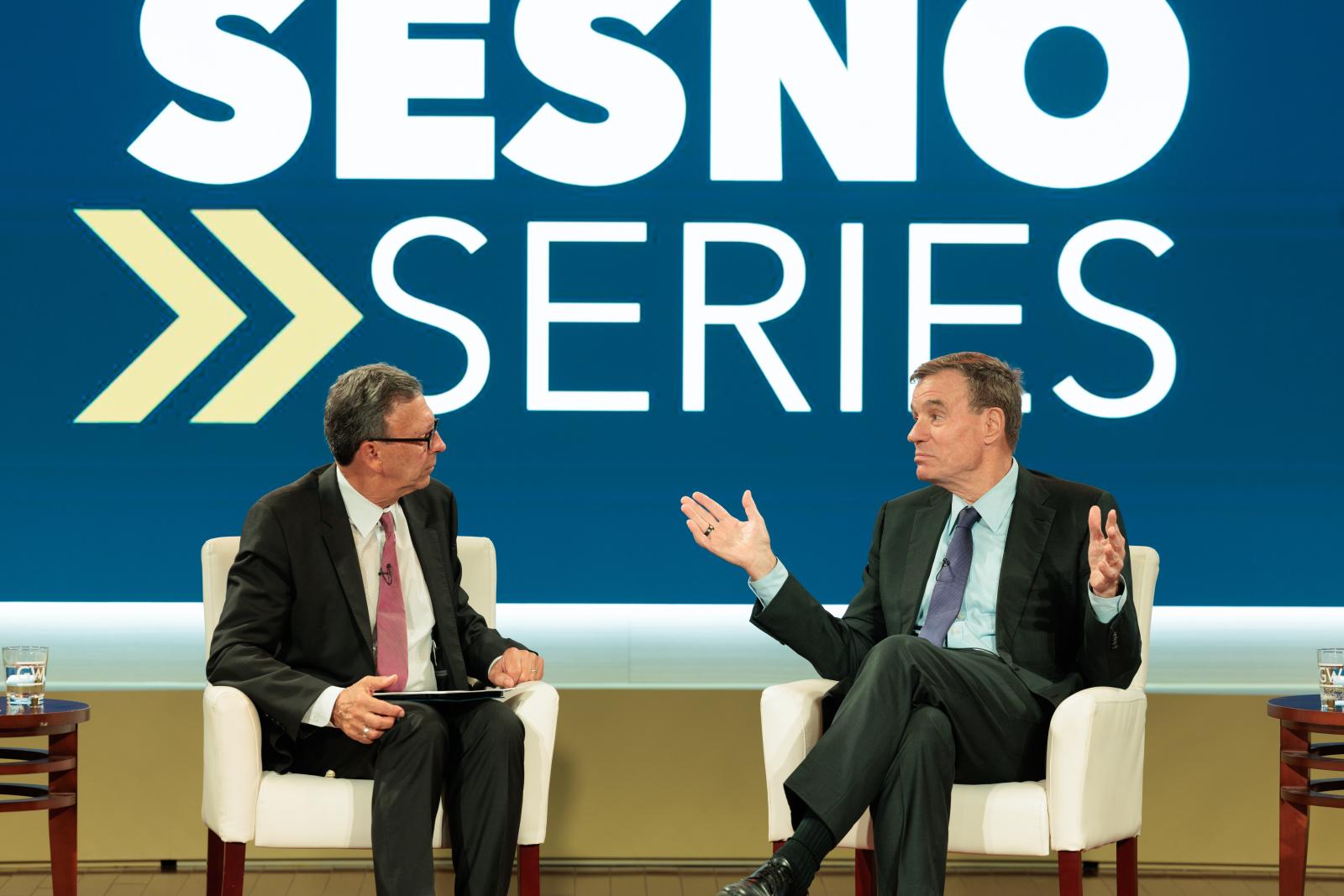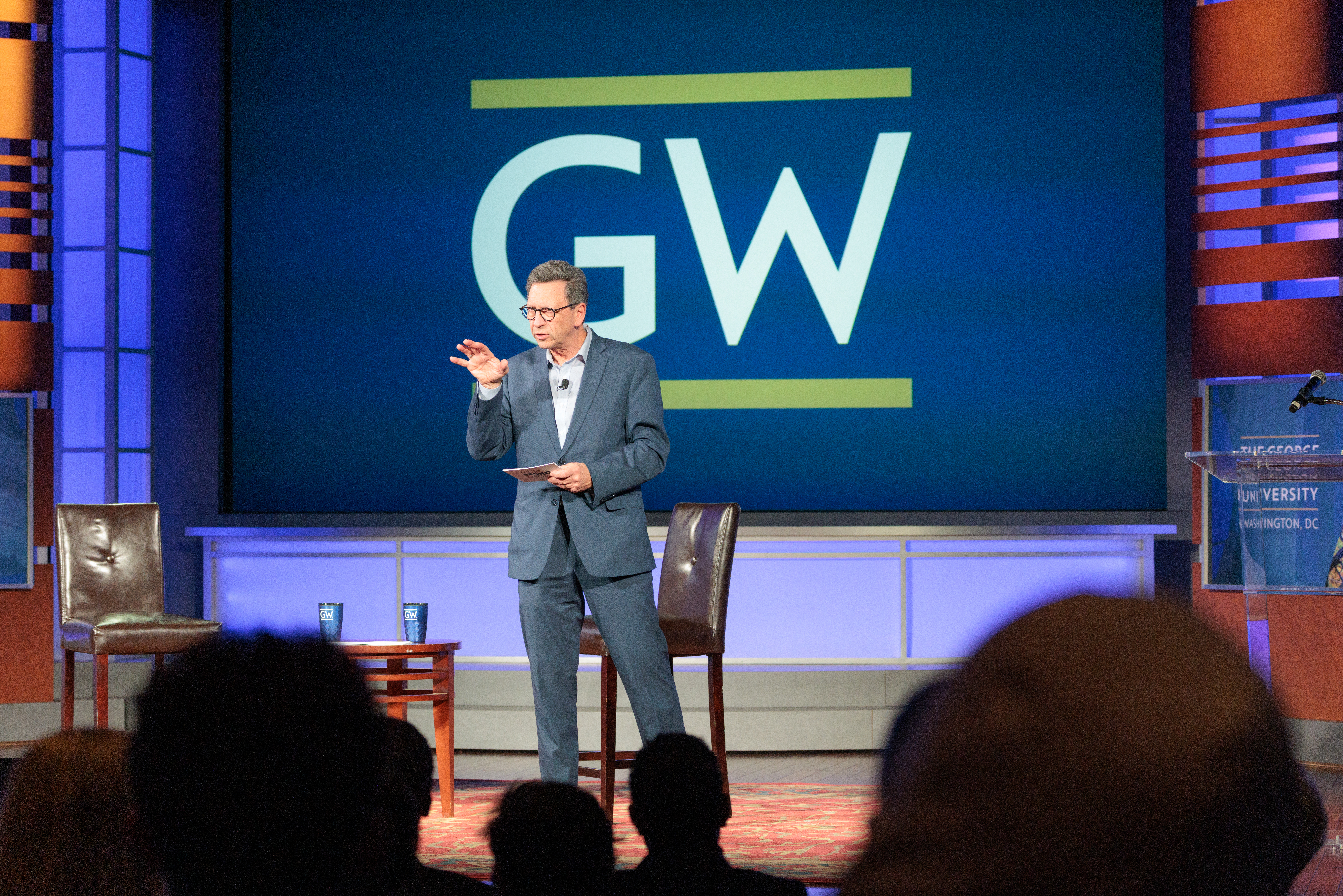 Endowed by GW alumni Ted Segal, B.A. ’03, and Meredith Perla Segal, B.Accy. ’05, the Sesno Series was created to honor the contributions of Frank Sesno, SMPA professor and former SMPA director, CNN reporter, anchor and Washington bureau chief.