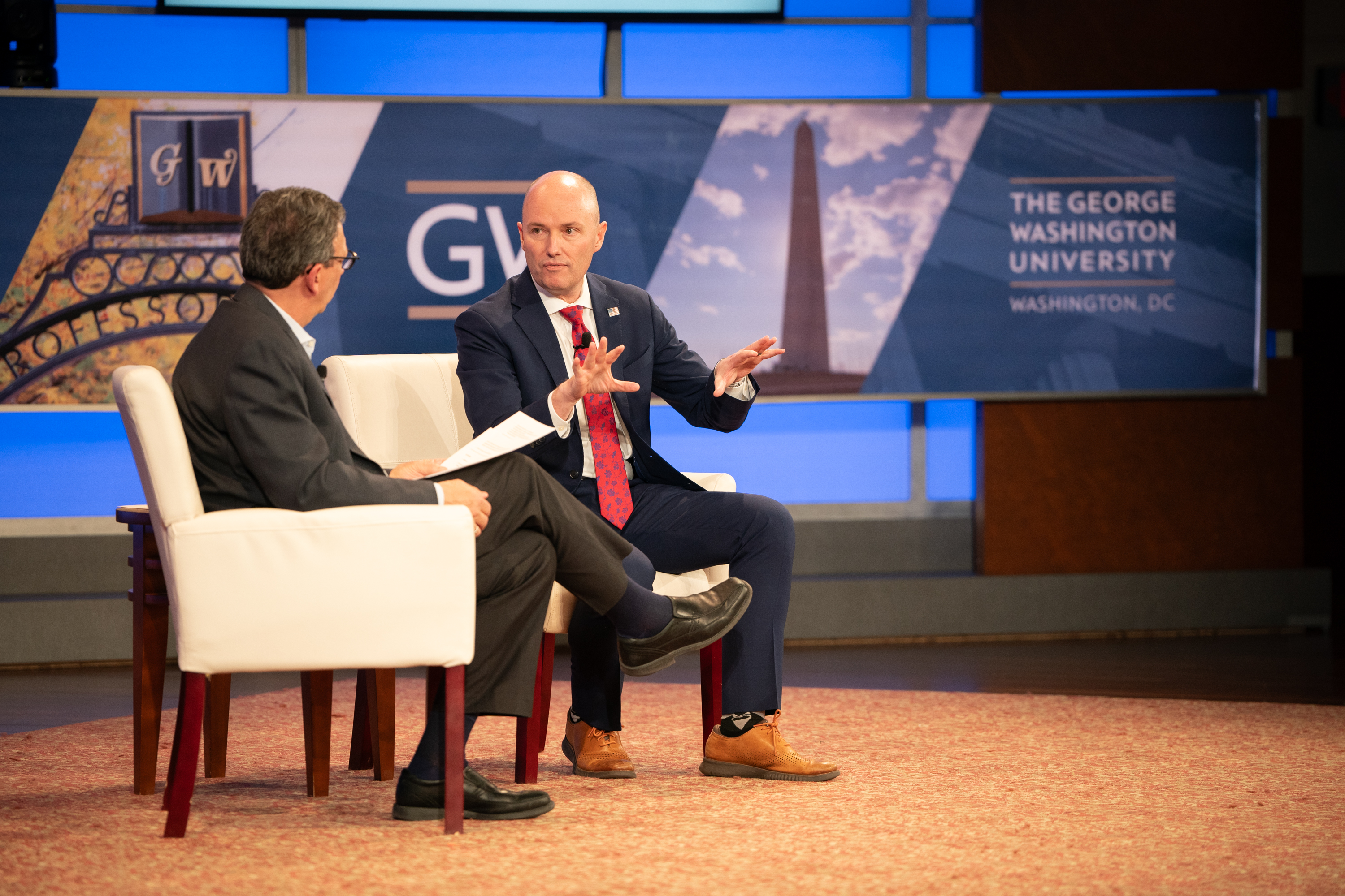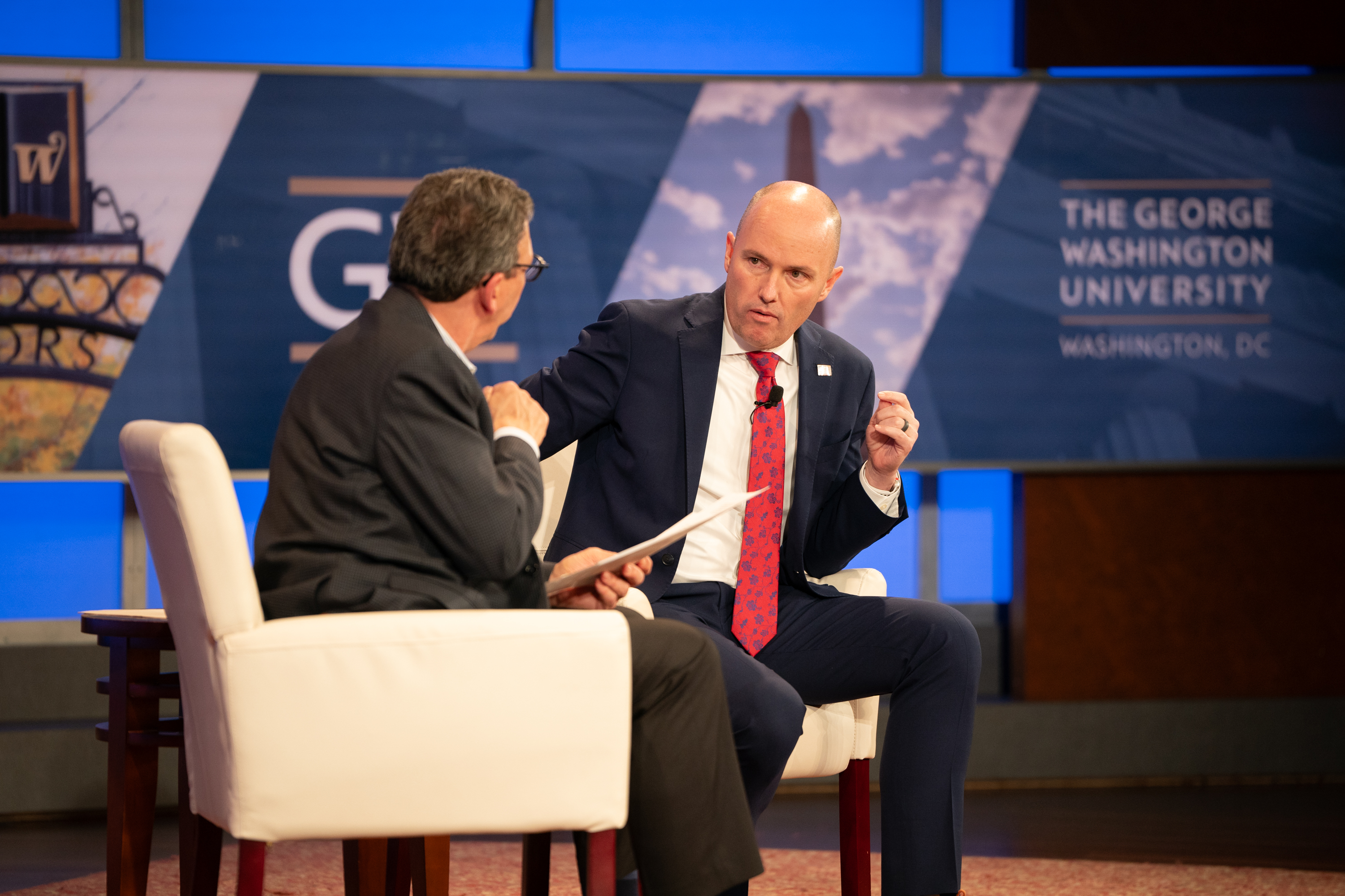 The second Sesno Series event, Disagree Better: How Politicians, the Public and the Press Can Turn Down the Heat, was held in February 2024. Frank and Governor Spencer J. Cox had an important discussion, alongside journalists Michel Martin and Jonah Goldberg, on the challenge of "disagreeing better" when it comes to identity, climate change, social media, news coverage, and more. This event also featured the thoughts and opinions of student voices. Be sure to check out the recording of the event and a gallery of photos below.